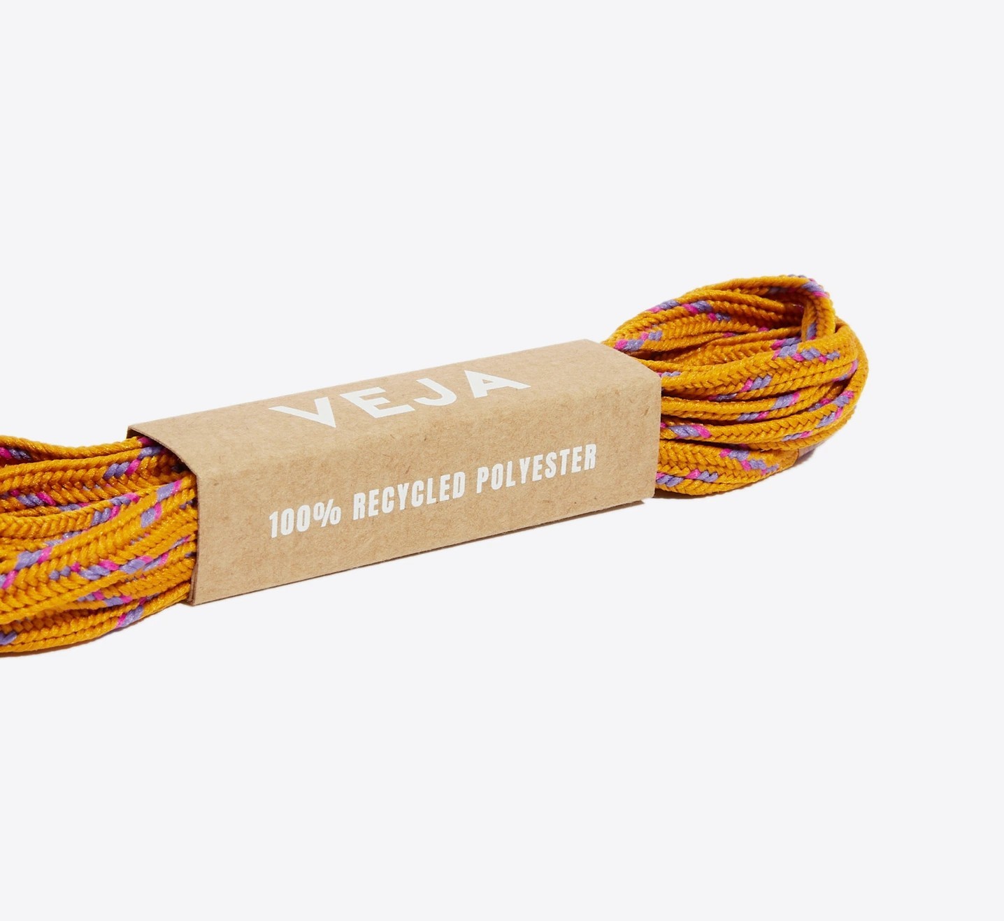 Cadarços feitos com 100% poliéster reciclado.