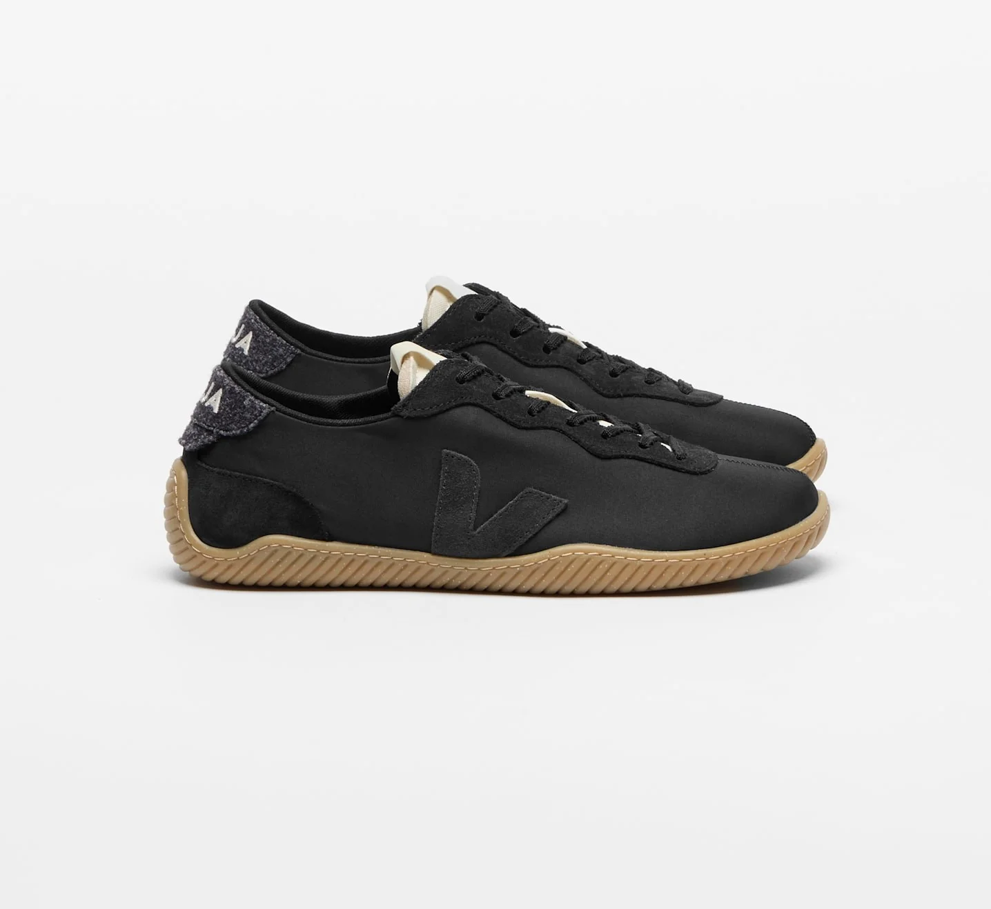 Sola: Borracha amazônica (40%), sílica mineral (27%), borracha reciclada de solas usadas da VEJA (10%), borracha sintética (7%) e outros (16%)