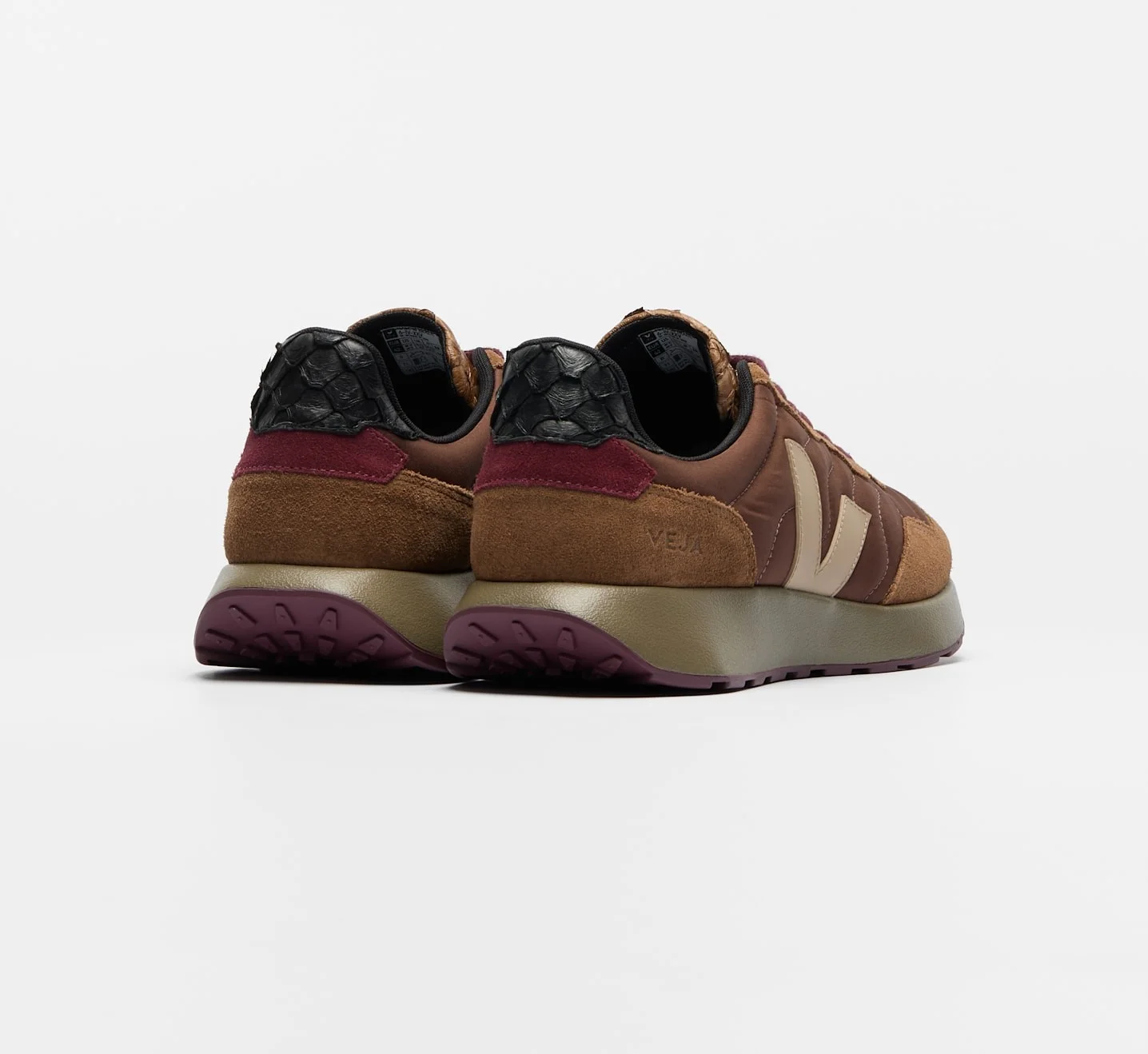 Palmilha: Borracha amazônica (10%), E.V.A. de base biológica (42%, sendo 33% de cana-de-açúcar), E.V.A. reciclado (12%), algodão orgânico (11%) e outros (25%)