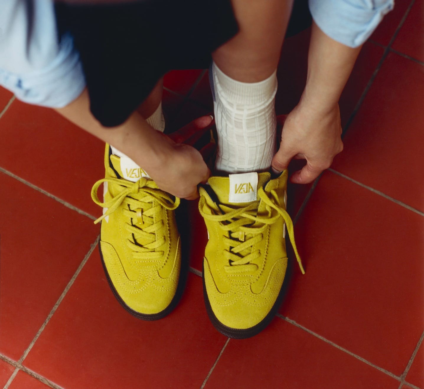 A camurça é feita a partir da parte inferior do couro bovino previamente escovado para torná-la mais macia e flexível. Ela vem de fazendas no sul do Brasil (Rio Grande do Sul). É curtida no Brasil, sem o uso de produtos químicos perigosos ou proibidos. A VEJA utiliza corantes convencionais que cumprem as regulamentações. Atenção especial é dada ao uso da água durante o processo de curtimento. A camurça também é revestida com óleos hidrorrepelentes sem PFCs (compostos químicos) para proteger os tênis da chuva leve. A camurça é certificada com selo Prata pelo Leather Working Group.